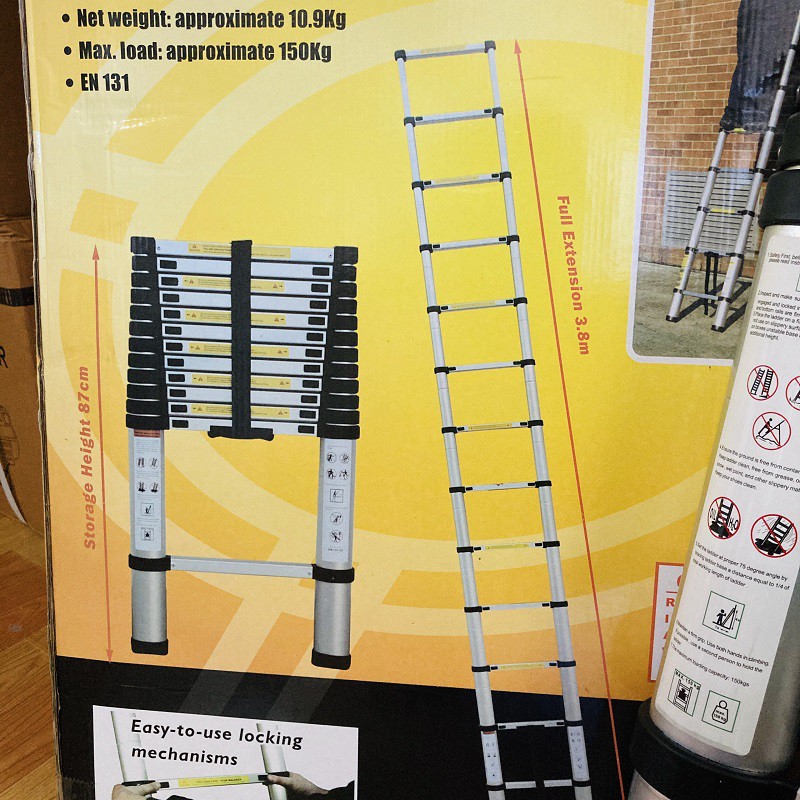 Nhà cửa & Đời sống > Dụng cụ & Thiết bị tiện ích > Thang || Thang nhôm rút đơn Karlis K380 | Chiều Cao 3m8 | Chịu Tải 250Kg | Chất Liệu Nhôm Cao Cấp Chắc Chắn Nặng 12kgCòn hàng