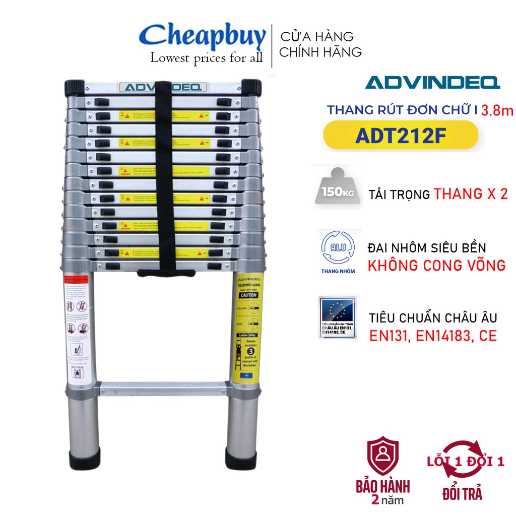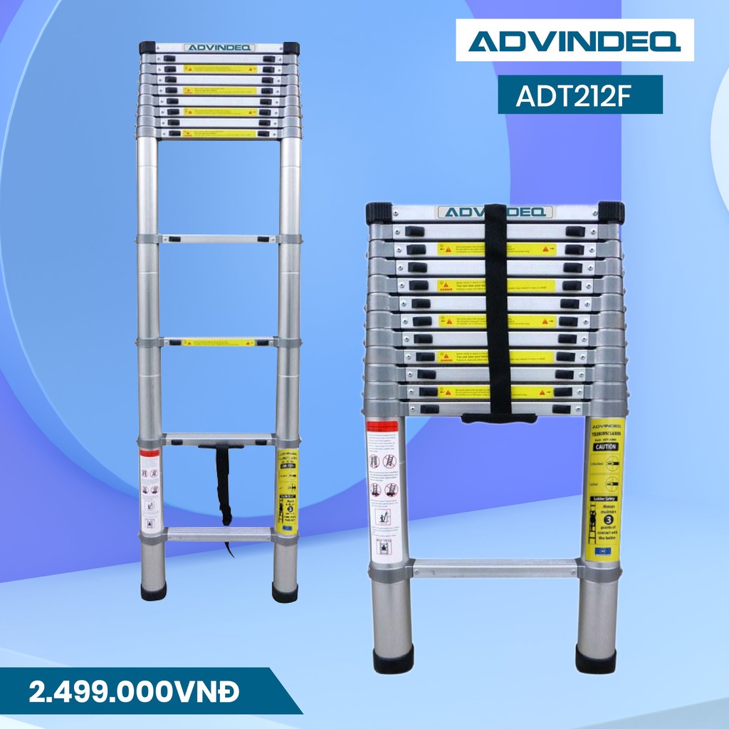 - Thang nhôm rút gọn đơn, thang rút gọn chữ I Advindeq ADT212F là dòng sản phẩm cao cấp, đai khớp hoàn toàn làm bằng nhôm vững chắc, chiều cao tối đa là 3,8m, gồm 13 bậc, khoảng cách giữa các bậc là 30cm. Thích hợp sử dụng các công việc trong nhà như sửa chữa bóng đèn điện, lau chùi nhà cửa, và đặc biệt phù hợp cho ngành thiết bị viễn thông hay ngành điện lực, gia công biển quảng cáo phải di chuyển nhiểu ở ngoài đường.