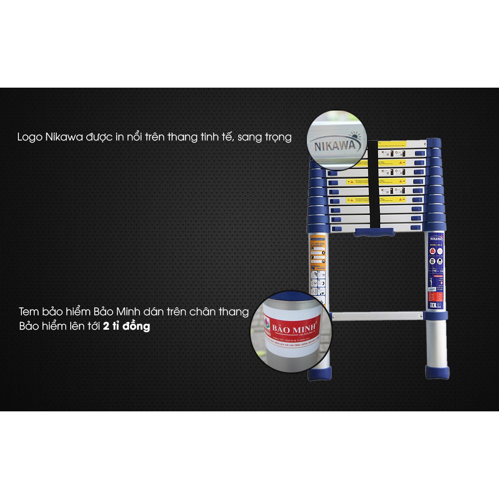 - Thang có chiều cao rút đơn gọn 0.78m nên có thể vận chuyển bằng xe máy hoặc để trong ô tô. Thang nhôm Nikawa - thang di động nhất hiện có.