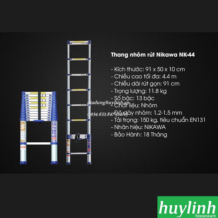 Thông số kỹ thuật Thang nhôm rút đơn Nikawa NK-44