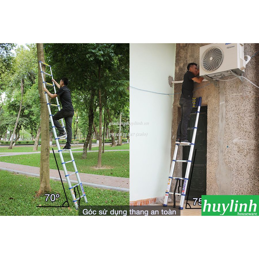 - Với khả năng thu gọn với kích thước thu gọn là 91x50x10cm thang có thể dễ dàng di chuyển và mang vác hơn so với các dòng thang nhôm và thang tre thông thường.