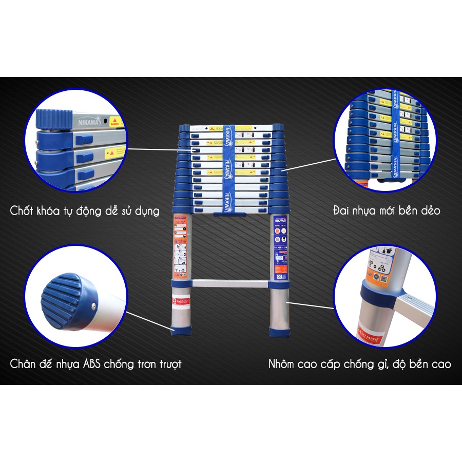 Thang nhôm rút đơn Nikawa NK-44, 13 bậc, nhập khẩu Nhật Bản, bảo hành chính hãng