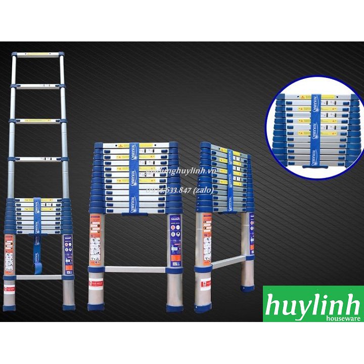 - Với màu xanh nổi bật thang và hộp đựng thang được trang trí bắt mắt. Thang nhôm rút đơn Nikawa là sản phẩm cao cấp với chất lượng vượt trội so với các sản phẩm khác trên thị trường.