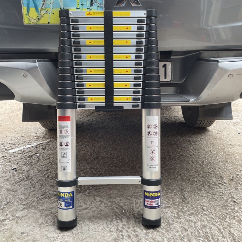 - Thang nhôm rút gọn NiNDA được sản xuất theo tiêu chuẩn an toàn Châu Âu EN-131 với tải trọng lên tới 150kg, đảm bảo an toàn cho người dùng trong quá trình sử dụng sản phẩm.