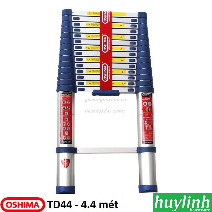 Thang nhôm rút đơn Oshima TD44 thiết kế với 15 bậc, khoảng cách mỗi bậc 30cm, chiều cao 4.4 mét, là dòng thang cao cấp và chất lượng cao.Huy Linh phân phối và bảo hành chính hãng tại Oshima Việt Nam