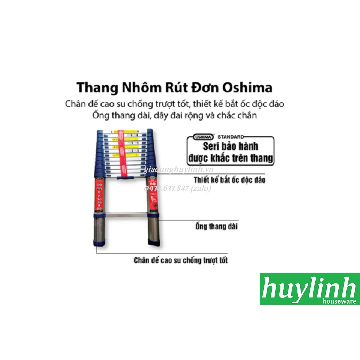 Nhà cửa & Đời sống > Dụng cụ & Thiết bị tiện ích > Thang || Thang nhôm rút đơn Oshima TD-44 - 4.4 métCòn hàng