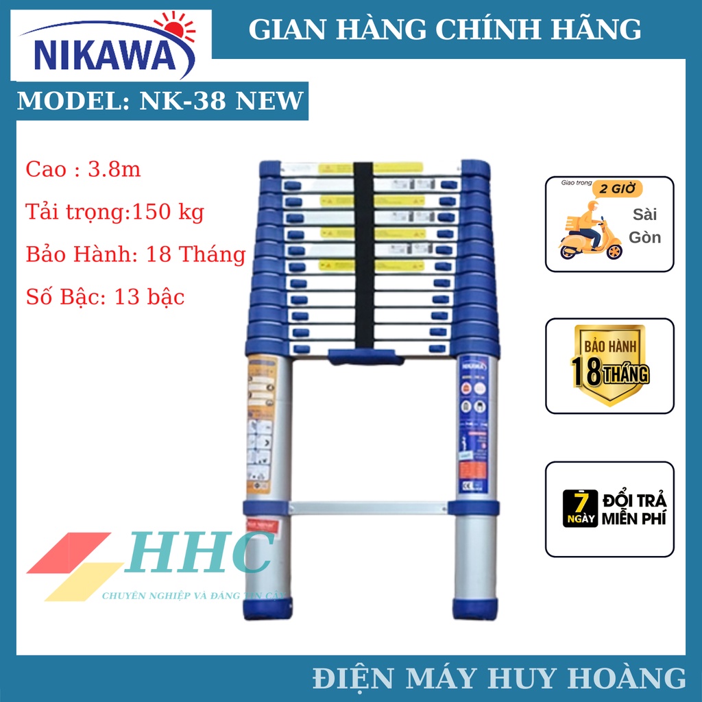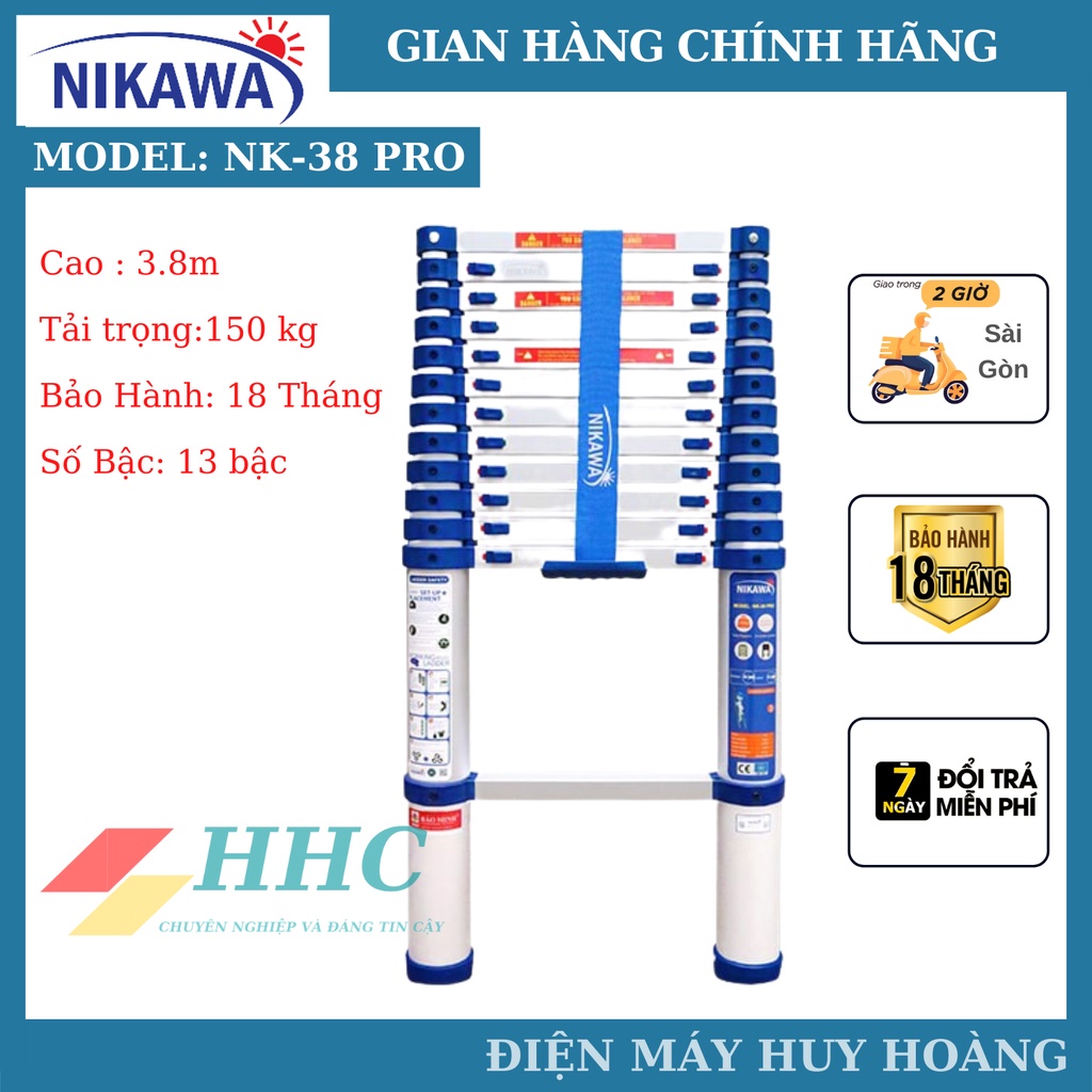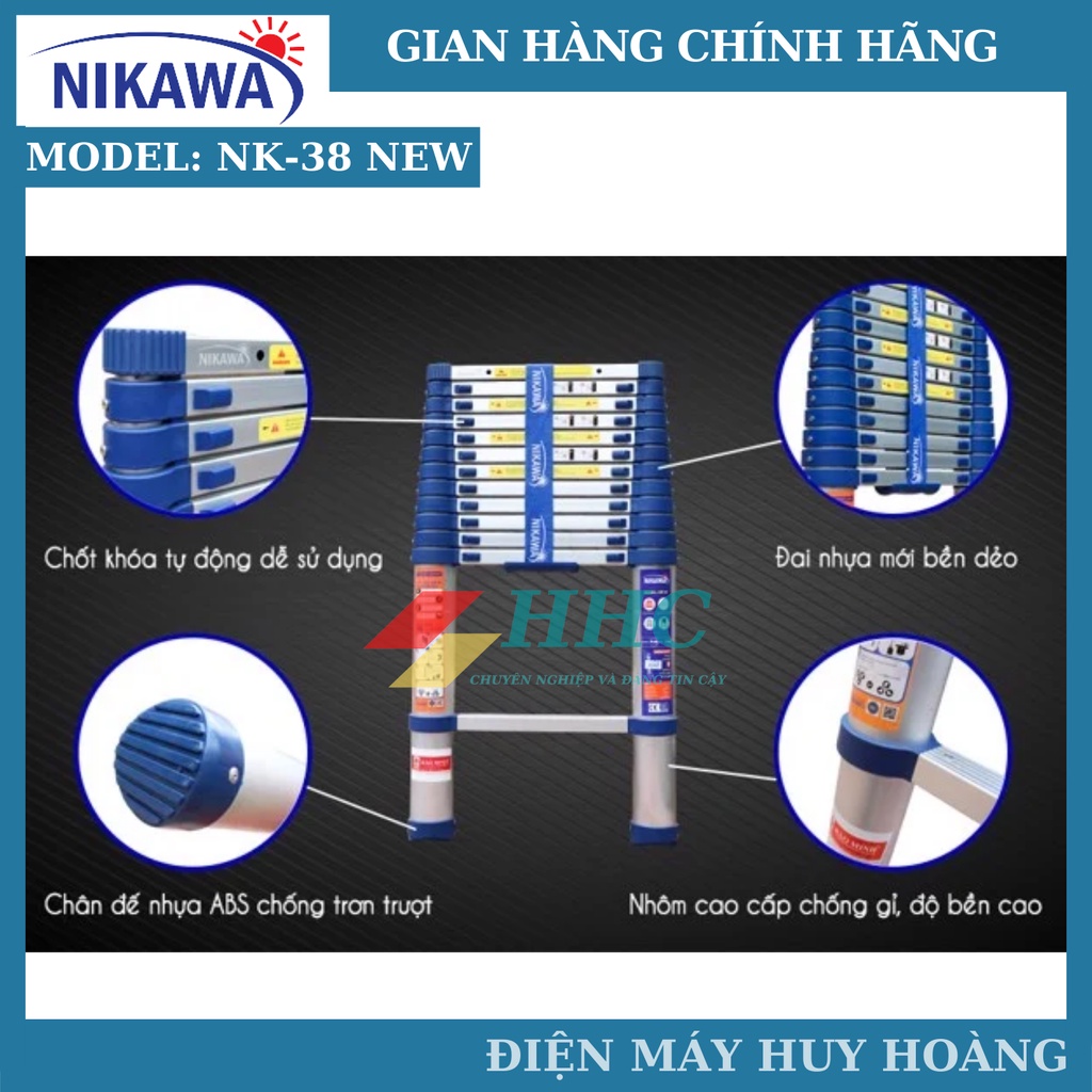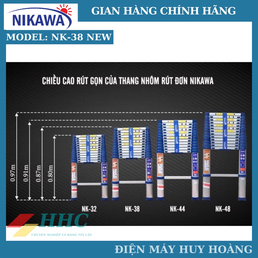 Thang nhôm rút đơn siêu bền Nikawa NK-38 New. NK-38 Pro