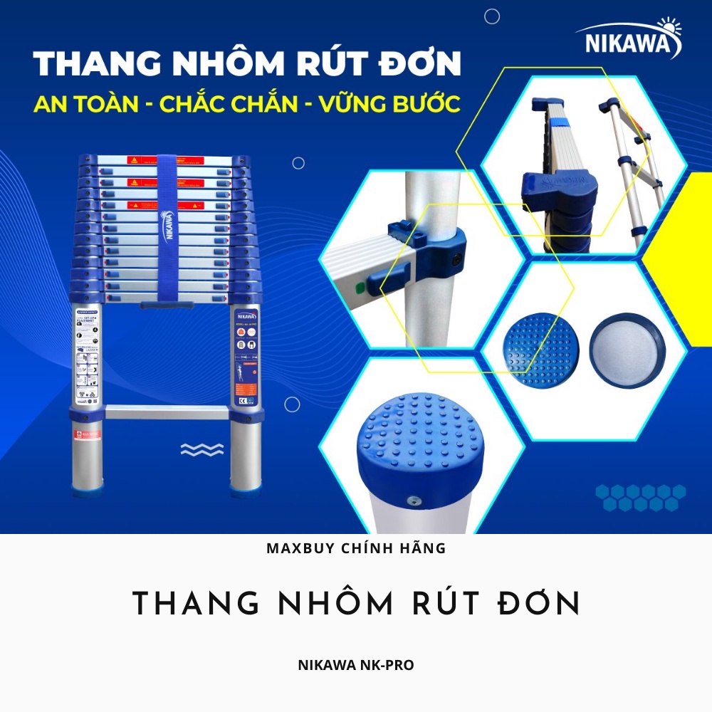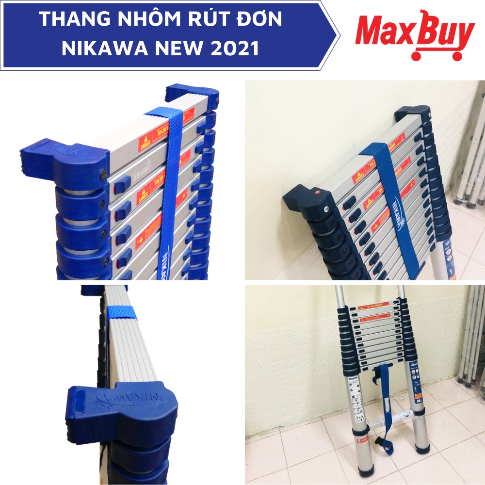 Giới thiệu Thang nhôm rút đơn xếp gọn đa năng 11-14 bậc 3,2 đến 4,8m nhập khẩu Nhật Nikawa PRO bảo hành 18 tháng giao hỏa tốc HN