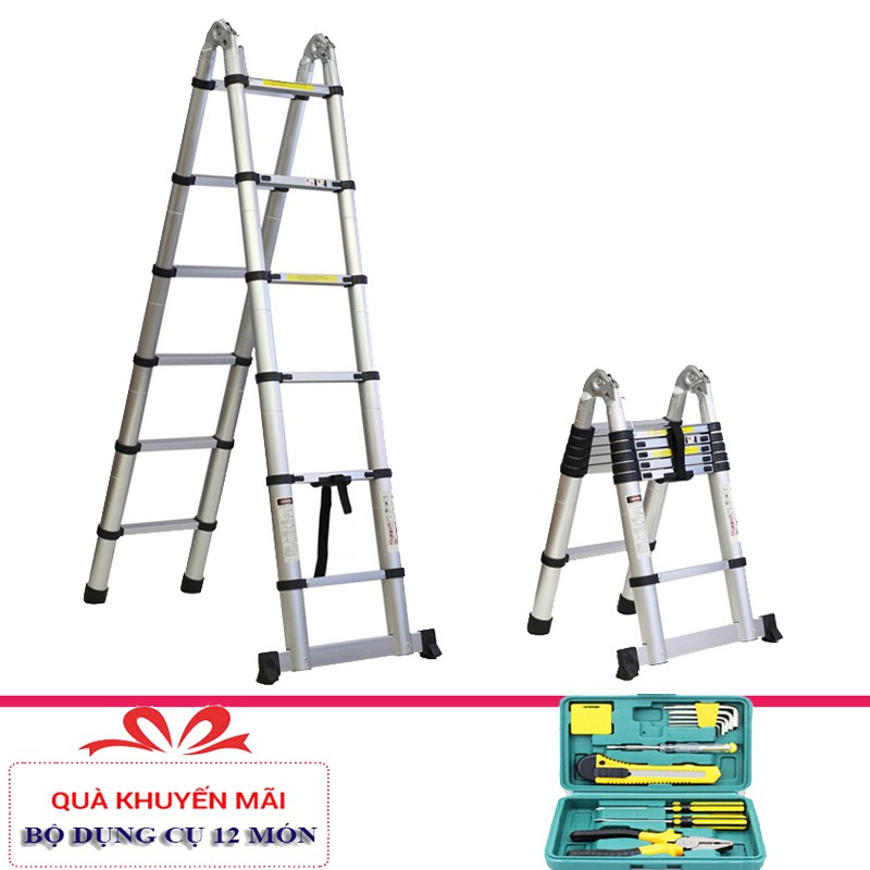 Thang nhôm rút gọn chữ A Kachi + Tặng dụng cụ 12 món