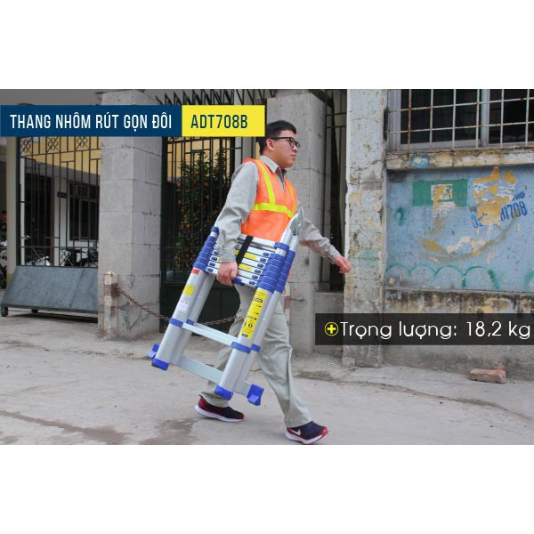 Nhà cửa & Đời sống > Dụng cụ & Thiết bị tiện ích > Thang || Thang nhôm rút gọn (chữ A) Advindeq ADT708B (màu xanh)Còn hàng