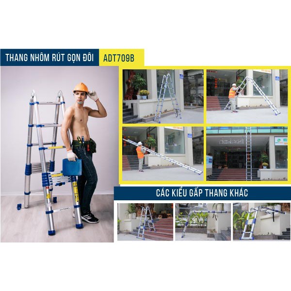 Giới thiệu Thang nhôm rút gọn (chữ A) Advindeq ADT709B