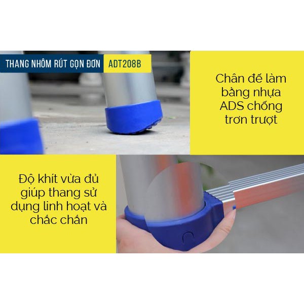 Thang nhôm rút gọn đơn 2.6M- 3.2M- 3.8M- 4.9M nhập khẩu ADVINDEQ - Hàng chính hãng,bảo hành 2 năm