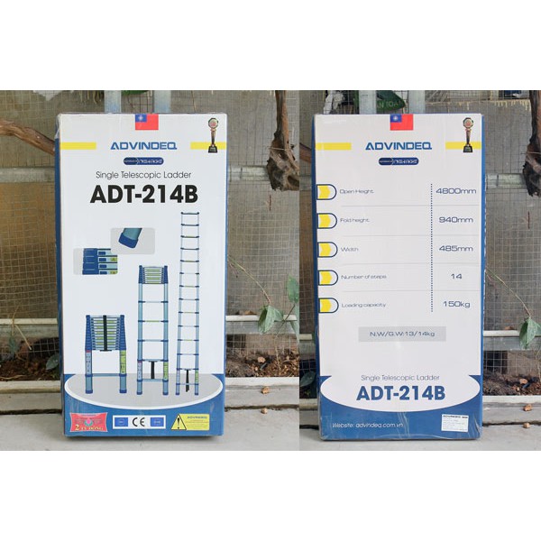 Nhà cửa & Đời sống > Dụng cụ & Thiết bị tiện ích > Thang || Thang nhôm rút gọn đơn Advindeq ADT214B ( Chiều cao 4,9m, 14 bậc) hàng chính hãng bảo hành 24 thángCòn hàng