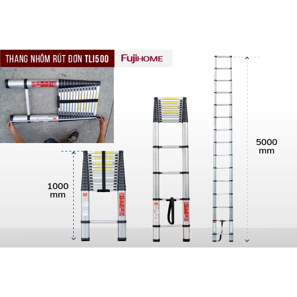 1. ✅ THANG NHÔM RÚT GỌN ĐƠN FUJIHOME TLI500 - CAO 5M