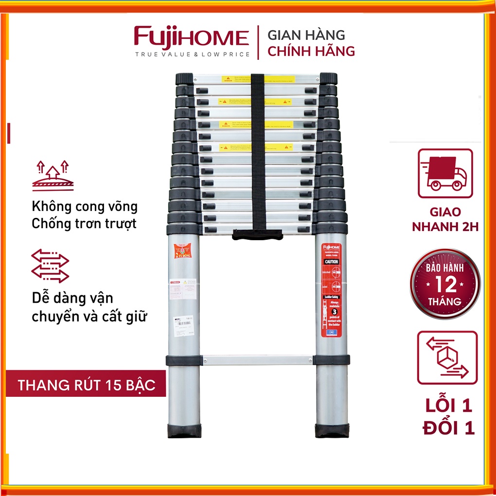 Nhà cửa & Đời sống > Dụng cụ & Thiết bị tiện ích > Thang || Thang nhôm rút gọn đơn cao 3,8M - 5M gấp gọn nhập khẩu CN Nhật Bản FUJIHOME, thang rút xếp gọn đa năng gia đình giá rẻCòn hàng