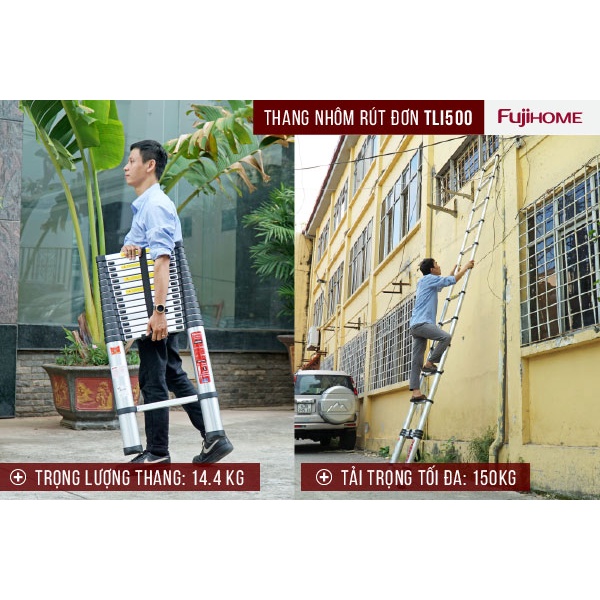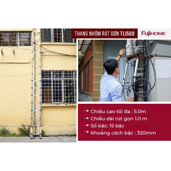 ✅ THANG NHÔM RÚT GỌN ĐƠN FUJIHOME TLI500 - CAO 5M