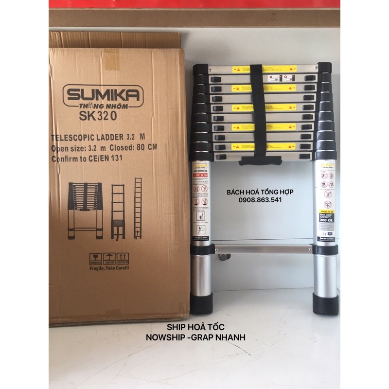 Thang nhôm rút gọn SUMIKA SK320-Chiều cao tối đa 3.2m,chiều dài rút gọn 0,78m-Shop có hàng sẵn nên Quý Khách cần hàng gấp đặt hàng nhanh ,Shop sẽ giao nhanh trong nội thành TPHCM và các quận lân cận!