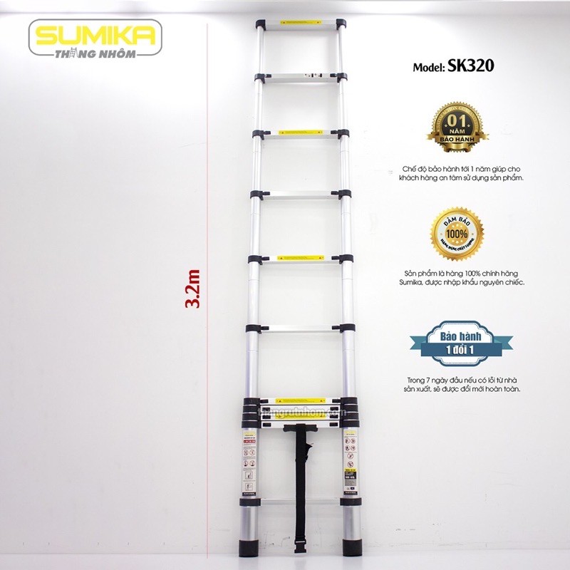 Thang nhôm rút gọn SUMIKA SK320-Chiều cao tối đa 3.2m,chiều dài rút gọn 0,78m