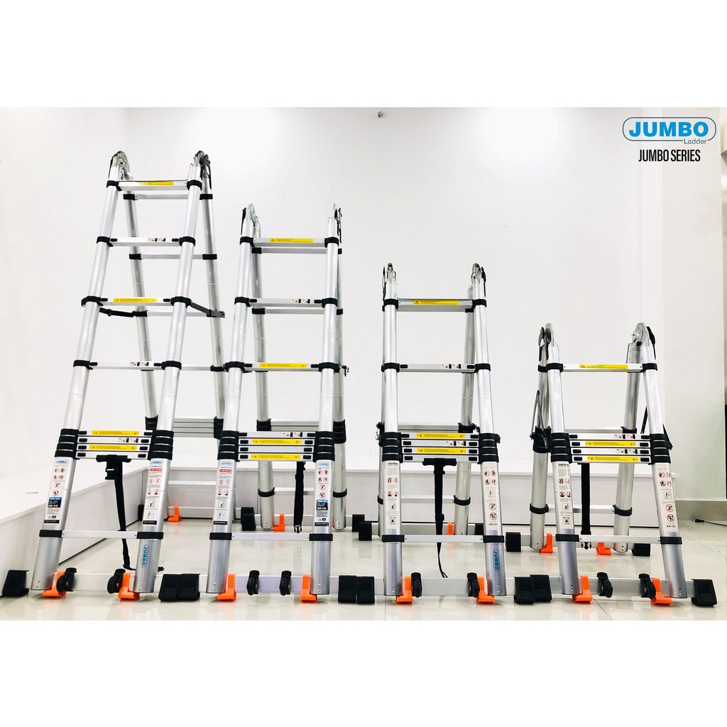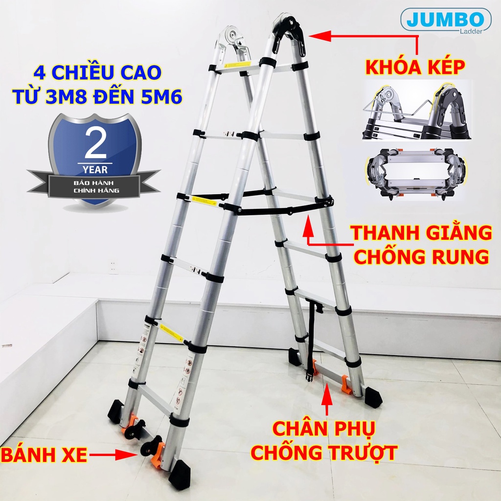 Thang nhôm rút xếp đôi chữ A Jumbo A190,A220,A250,A280 NEW Thang nhôm rút gọn đa năng cao cấp - 1m9, 2m2, 2m5, 2m8