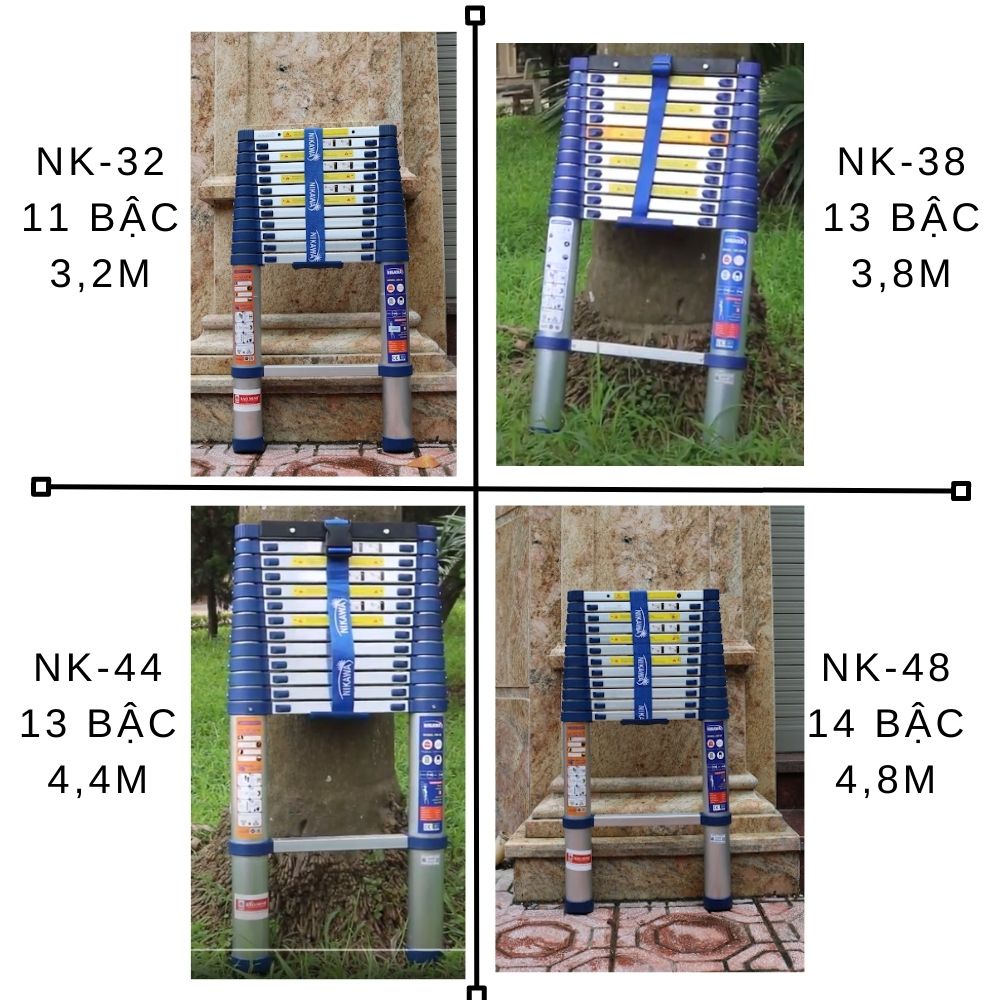 2. Thang nhôm rút Nikawa có nhiều phân loại chiều cao, giúp bạn lựa chọn thang sử dụng phù hợp
