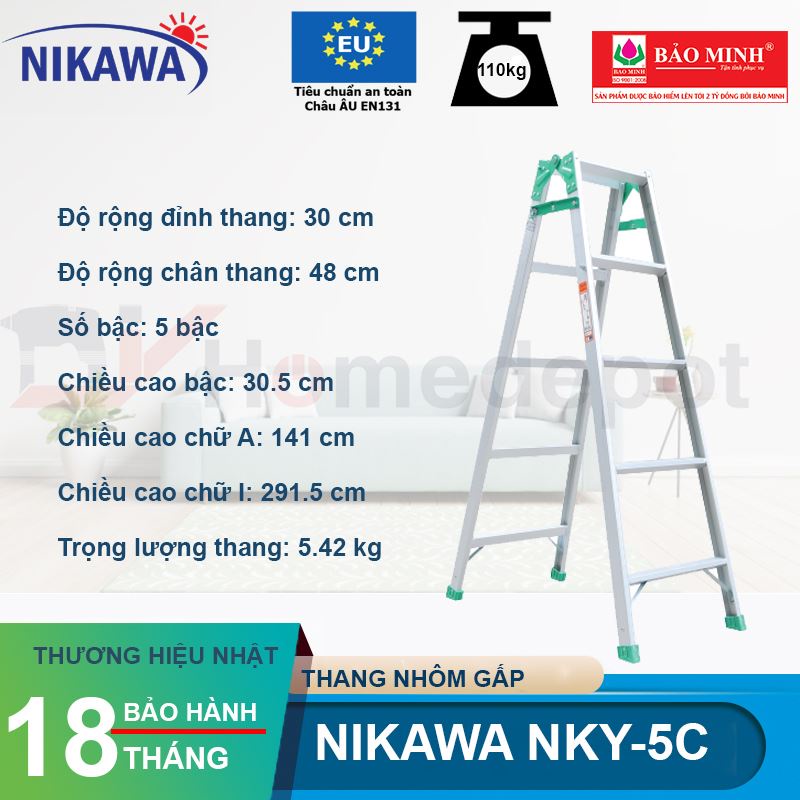 1. Thông số kỹ thuật của thang nhôm gấp Nikawa NKY-5C