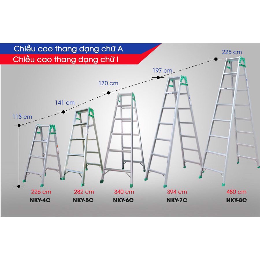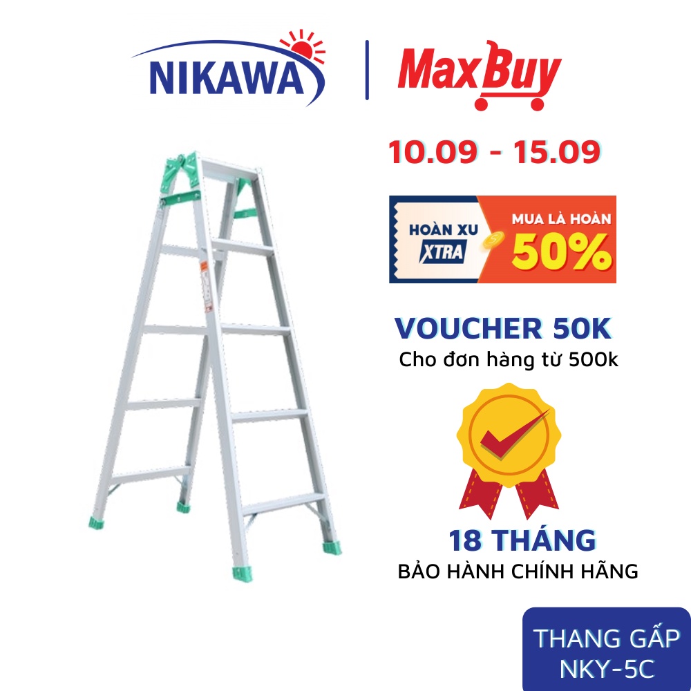 Thang nhôm chữ A Nikawa NKY-5C - 5 bậc - có thể duỗi thẳng- nhập khẩu Nhật Bản - bảo hàng 18 tháng