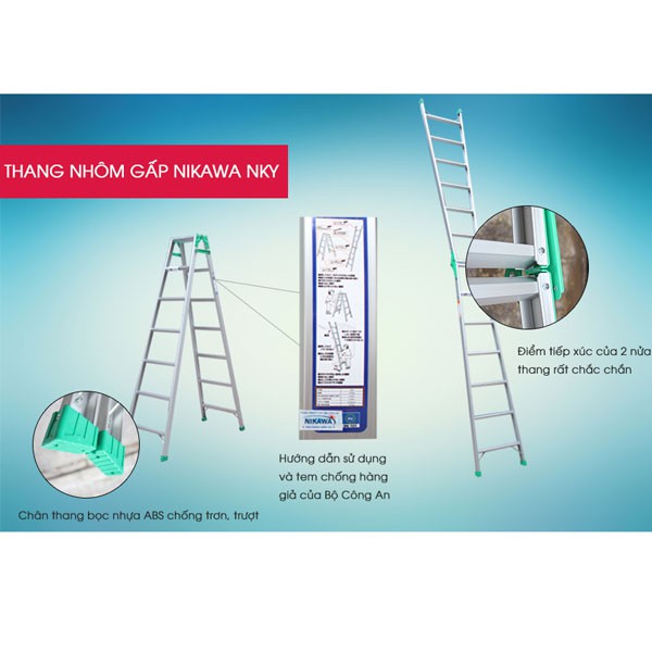 2. Ưu điểm của Thang nhôm gấp chữ A Nikawa NKY-5C - 5 bậc - nhập khẩu Nhật Bản - bảo hàng 18 tháng