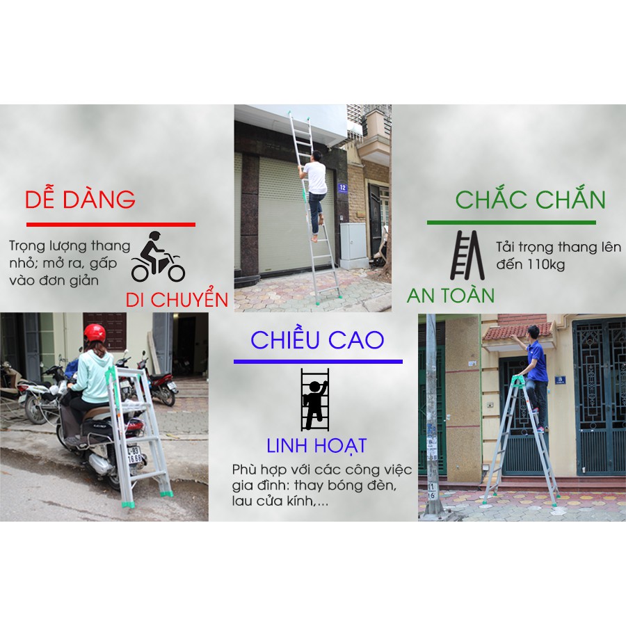 👉 Thang có kích thước nhỏ gọn giúp bạn tiết kiệm diện tích cất giữ, dễ dàng di chuyển, chắc chắn