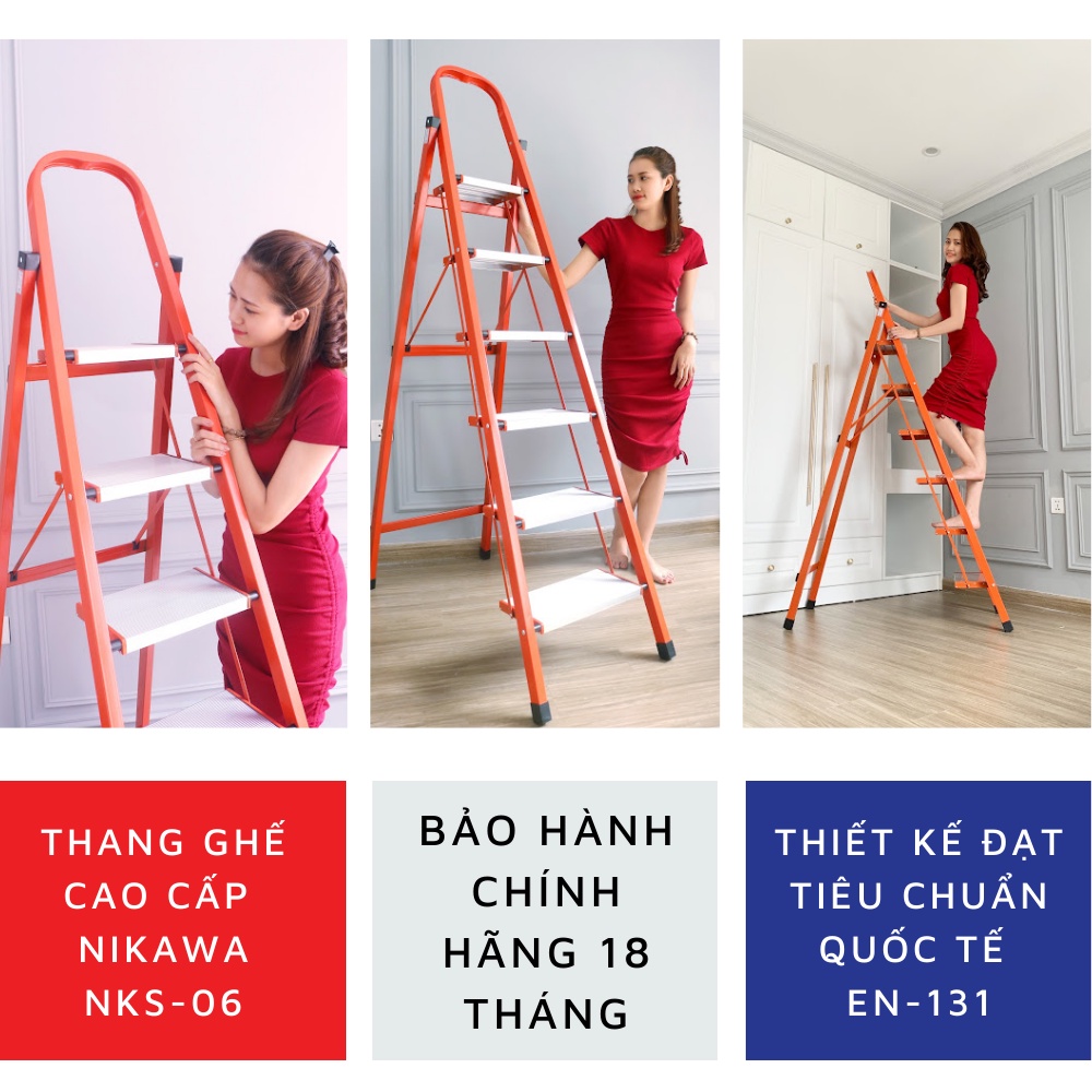 Thang nhôm ghế chữ a Nikawa NKS-06 - 6 bậc - nhập khẩu Nhật Bản, bảo hành chính hãng