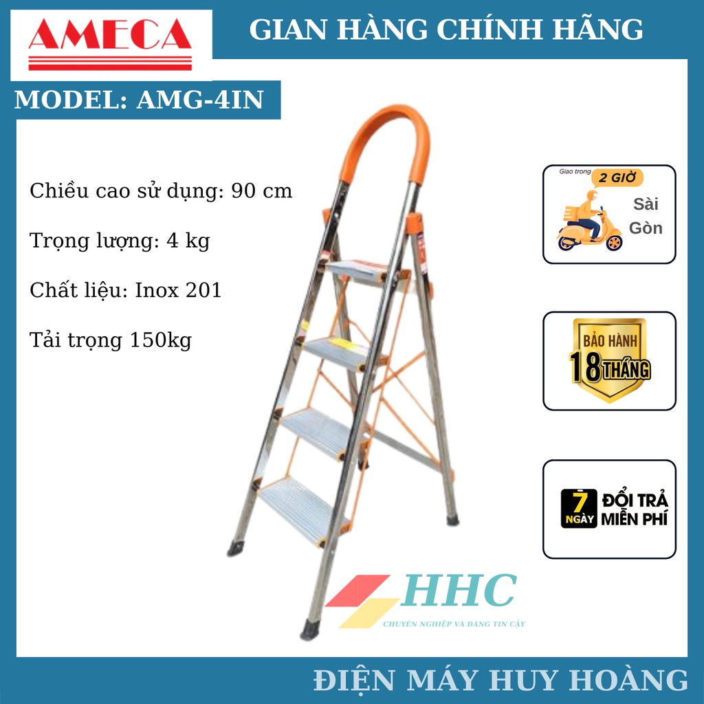 Nhà cửa & Đời sống > Dụng cụ & Thiết bị tiện ích > Thang || Thang nhôm xếp, thang ghế inox tay vịn 4 bậc Ameca AMG-4INCòn hàng
