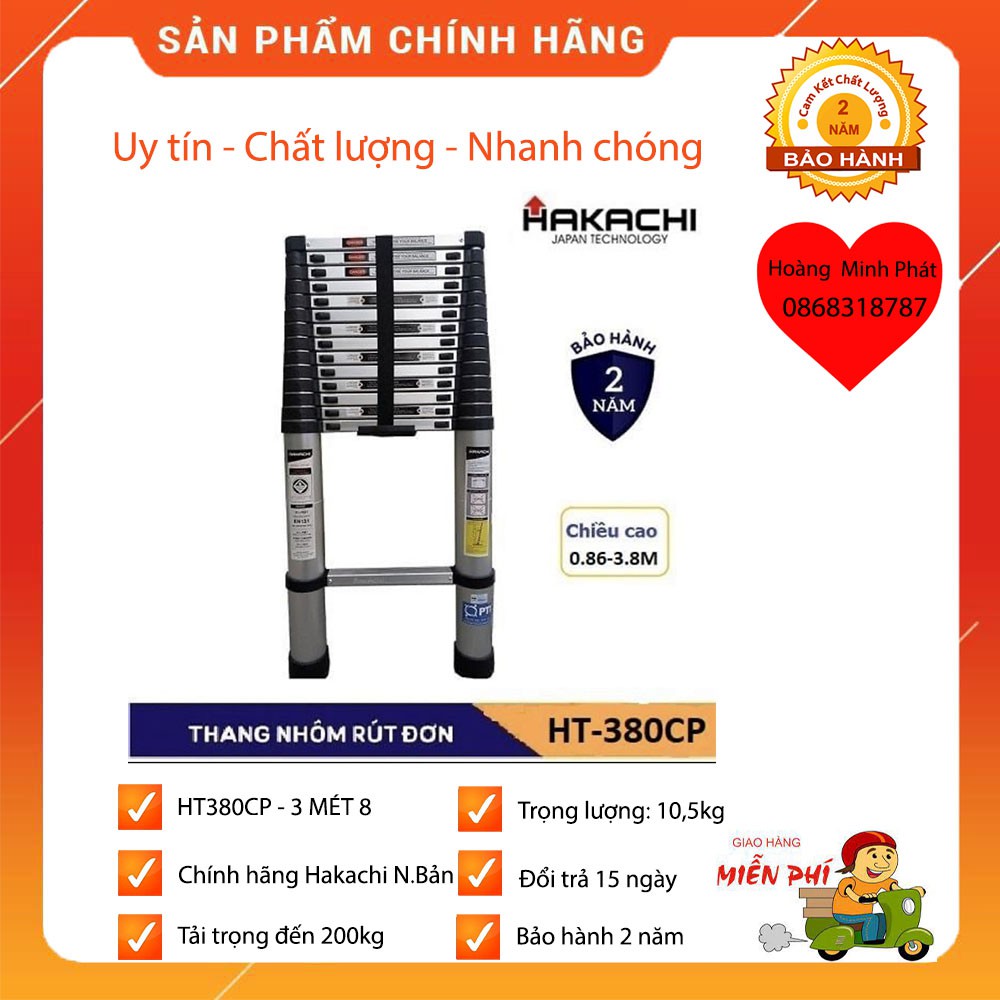 THANG RÚT 3M8 HAKACHI NHẬT BẢN HT380CP - BH 2 NĂM