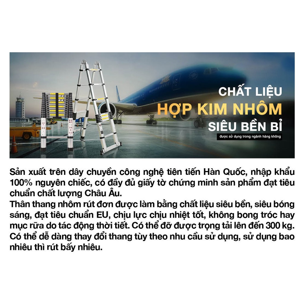 --------------------------------------- ĐẶC ĐIỂM NỔI BẬT SO VỚI MẪU THANG THÔNG THƯỜNG ---------------------------------- Thang được cải tiến mới với Nhôm 8030 Cao cấp hơn nhôm C6030