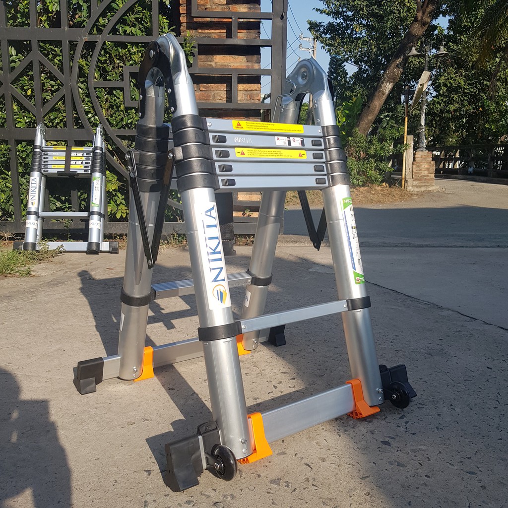 Nhà cửa & Đời sống > Dụng cụ & Thiết bị tiện ích > Thang || Thang rút đôi chữ A, NIKITA AID44, Chiều cao tối đa 4m4 có bánh xe mẫu 2021Còn hàng