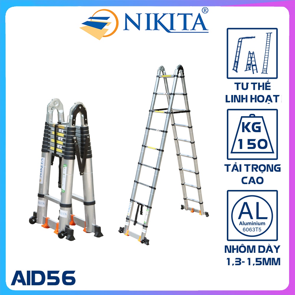 Nhà cửa & Đời sống > Dụng cụ & Thiết bị tiện ích > Thang || Thang rút đôi chữ A, NIKITA AID56, Chiều cao tối đa 5m6 có bánh xeCòn hàng