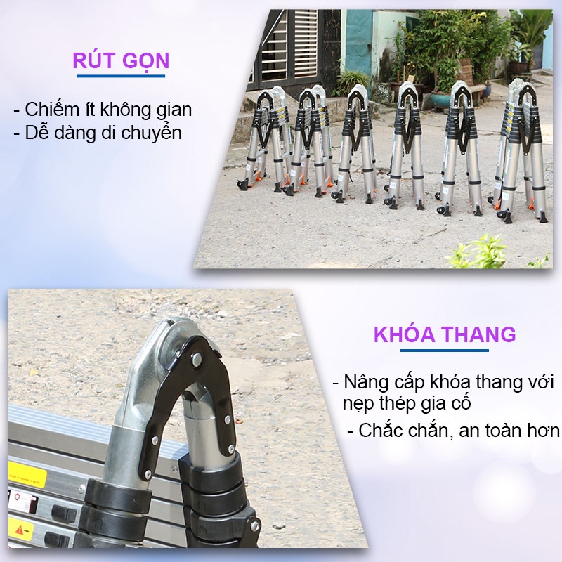 📌 Có thanh thép cố định ở thân thang giúp chống rung lắc