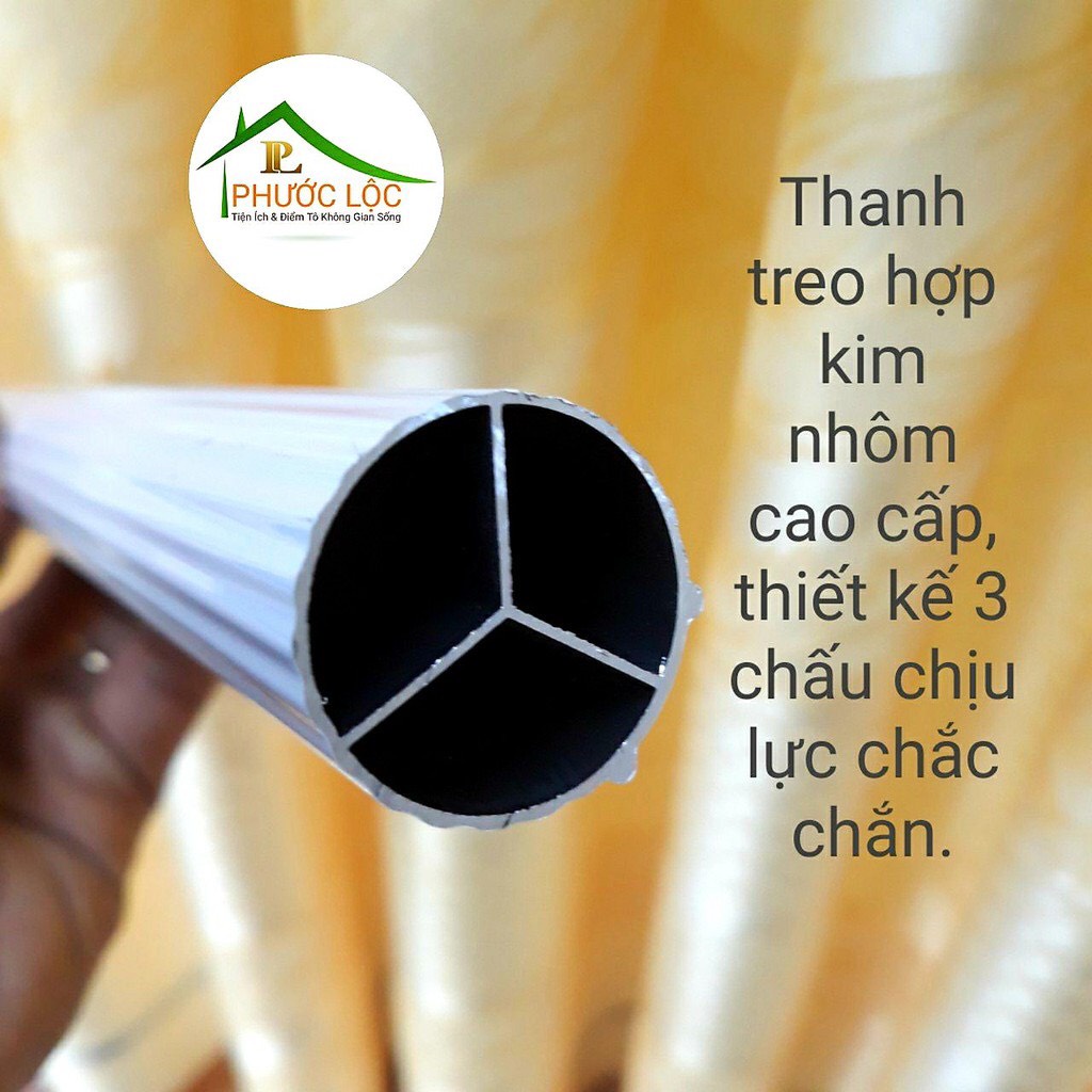 ➢ Thanh treo hợp kim nhôm cao cấp thiết kế 3 chấu chịu lực rất chắc chắn nên khách hàng hoàn toàn yên tâm khi sử dụng. 2 ray trượt phía trên giúp giảm ma sát với khoen rèm, làm cho việc kéo rèm nhẹ nhàng và mượt mà hơn. Thanh treo được sơn tĩnh điện màu trắng sang trọng, đường kính 28mm