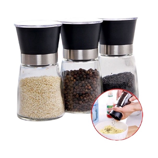 [Thánh xay tiêu] Dụng cụ xay tiêu/ Lọ đựng và xay tiêu 2in1 thủy tinh cầm tay cỡ lớn 13x7x7cm