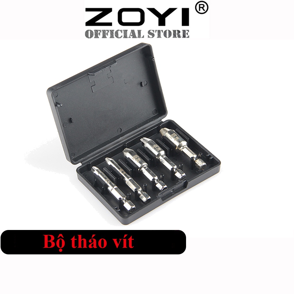 Bộ tháo vít gãy Zoyi 5 đầu chuôi lục giác khoan tháo lấy ốc vít bị gãy toét đầu---------------------------------------------------------