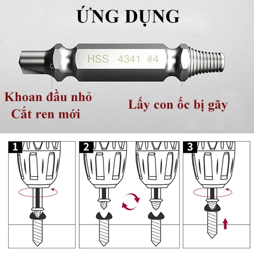 - Bộ 5 cây: thiết kế khoan và tháo ốc gẫy trên cùng một đầu