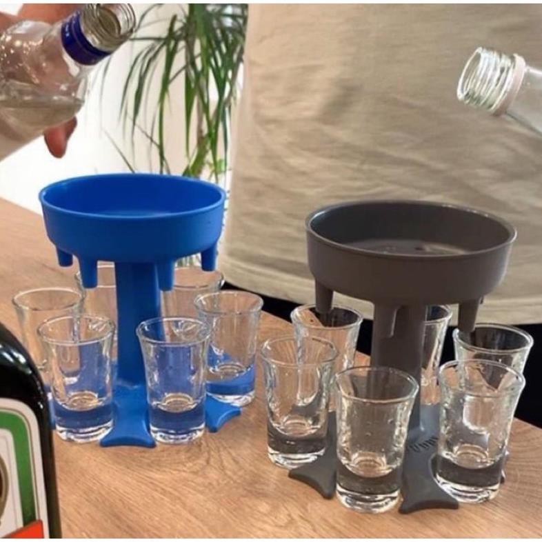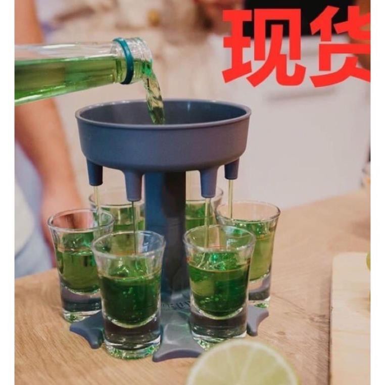 - Kiểu dáng : Dạng phễu có 6 vòi rót và 6 chân Đỡ ly , chỉ cần đổ dung dịch lên bên trên là phểu sẽ tự động chia rót xuông thành 6 vòi đều nhau , giúp nhanh chóng chia rượu đều mà chỉ cần 1 lần rót