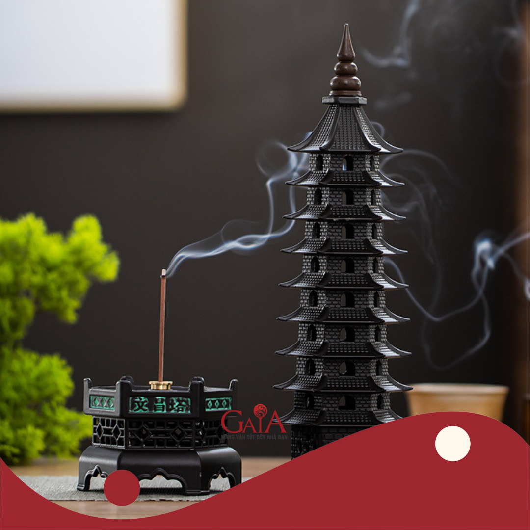 Giới thiệu Tháp văn xương phong thủy 9 tầng chất liệu hợp kim cao cấp kết hợp đế xông trầm có thể tháo rời KT 30.5x8.3cm