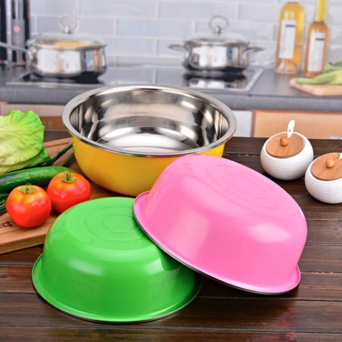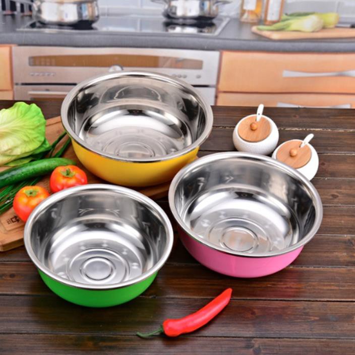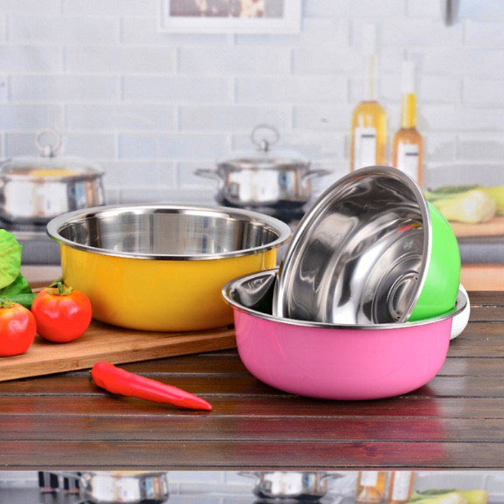 Bộ 3 chậu inox đựng thực phẩm với màu sắc đa dạng giúp căn bếp thêm tươi mới rạng rỡ hơn