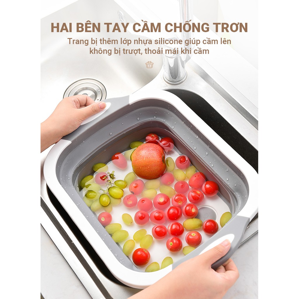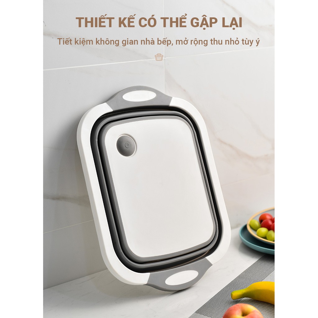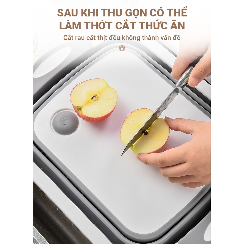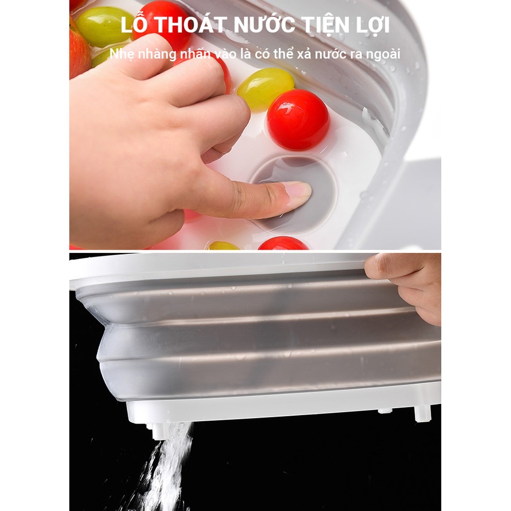 Thau chậu kèm thớt 2 trong 1, có thể gập lại làm tấm thớt, mở rộng ra sẽ thành thau chậu rửa rau quả, chất liệu cao cấp