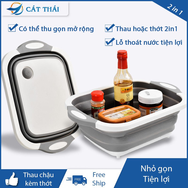 Thau chậu kèm thớt 2 trong 1, có thể gập lại làm tấm thớt, mở rộng ra sẽ thành thau chậu rửa rau quả, chất liệu cao cấp