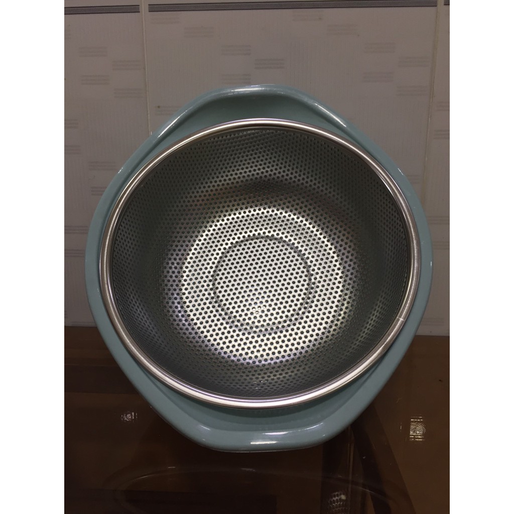 Bộ thau nhựa rổ inox đựng rau củ quảCombo gồm 1 rổ inox và 1 thau nhựa