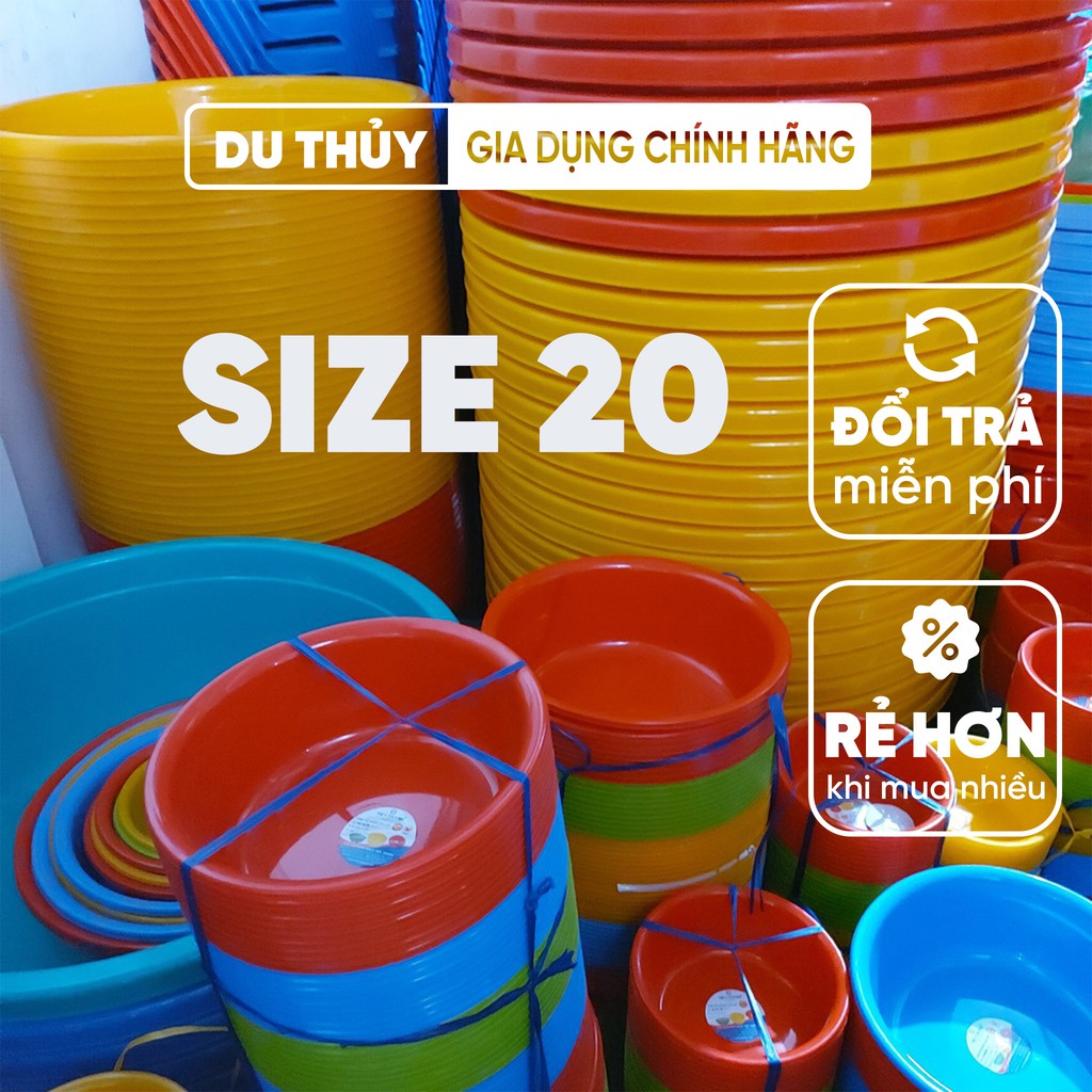Nhà cửa & Đời sống > Dụng cụ chăm sóc nhà cửa > Chậu, xô & gáo nước || Thau nhựa tròn size 20 Việt Thành, màu xanh dương, xanh lá, đỏ, vàng, nhựa pp chính phẩm bền đẹp của gia dụng Du ThủyCòn hàng