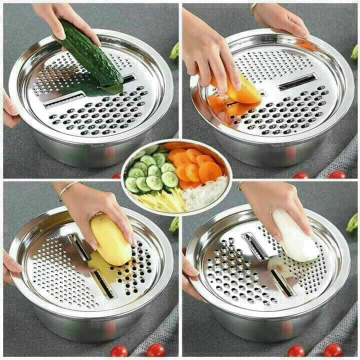 Nhà cửa & Đời sống > Dụng cụ nhà bếp > Bàn nạo, dụng cụ bào, cắt || Bộ thau rổ bào 𝑭𝑹𝑬𝑬𝑺𝑯𝑰𝑷 Bộ dụng cụ bào đa năng - Bộ 3 món bào nạo rau củ kiêm rổ và chậu inox cao cấpCòn hàng