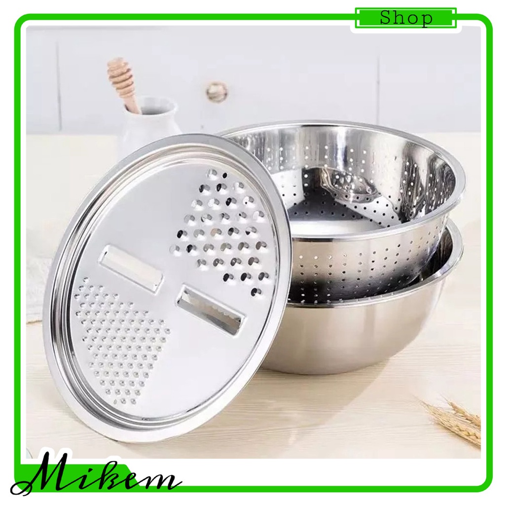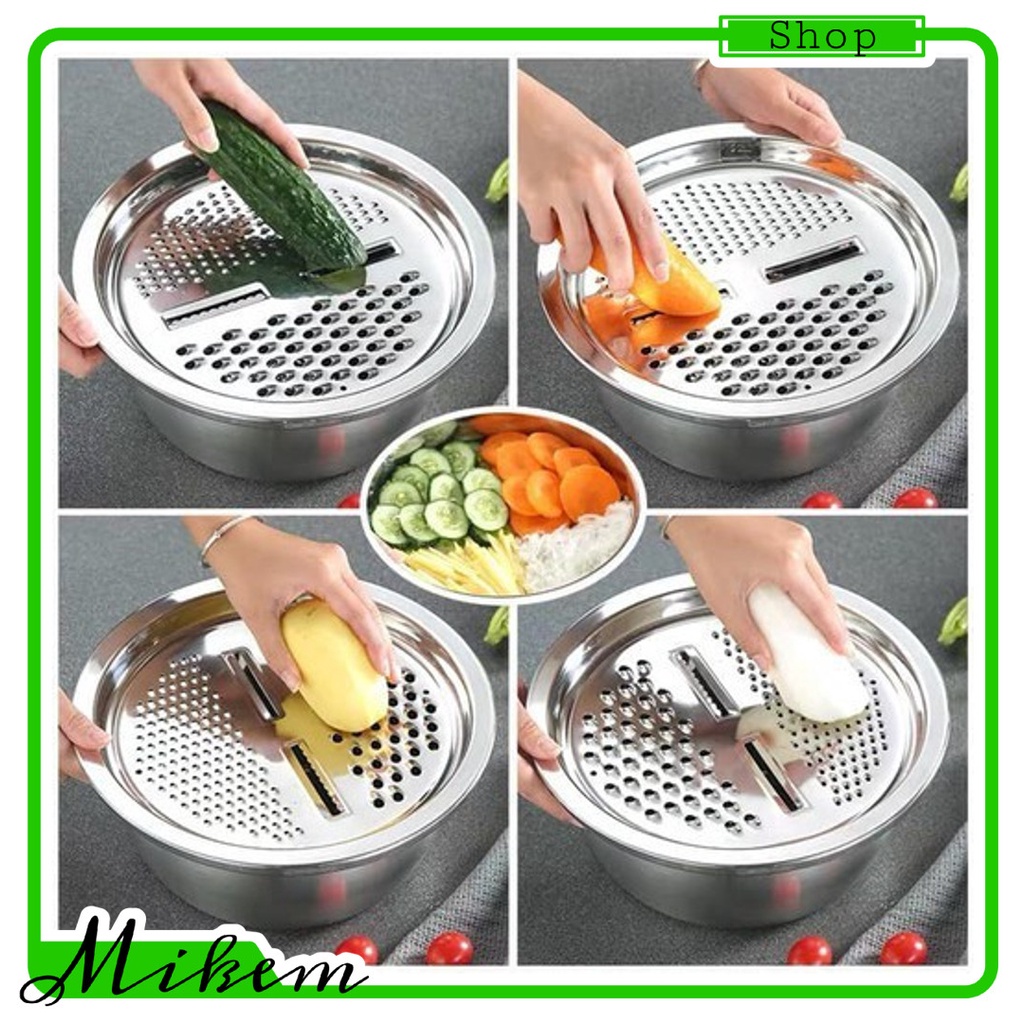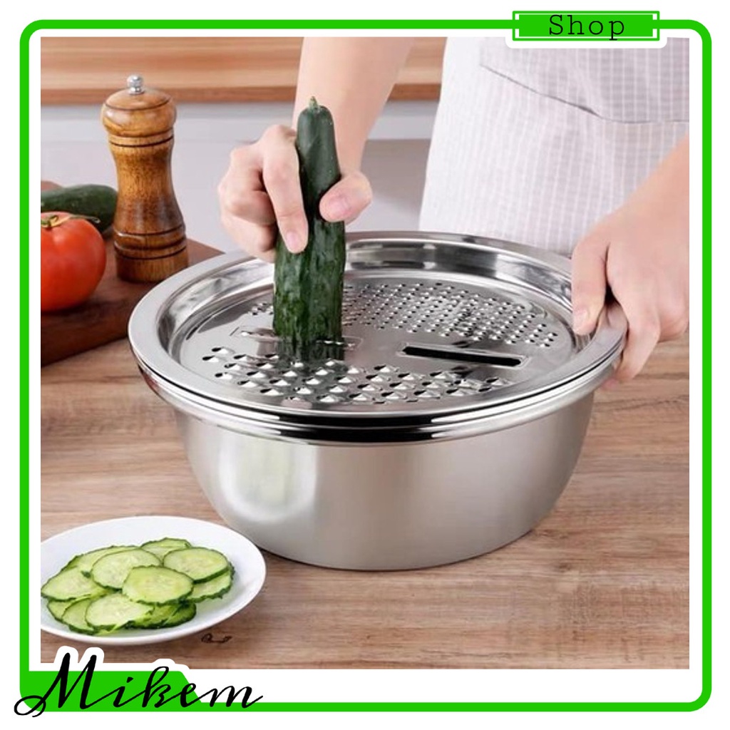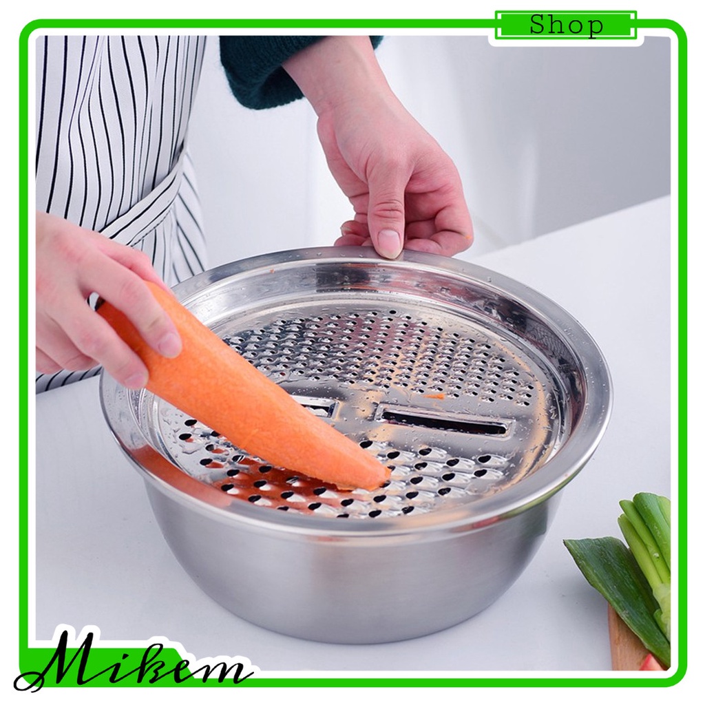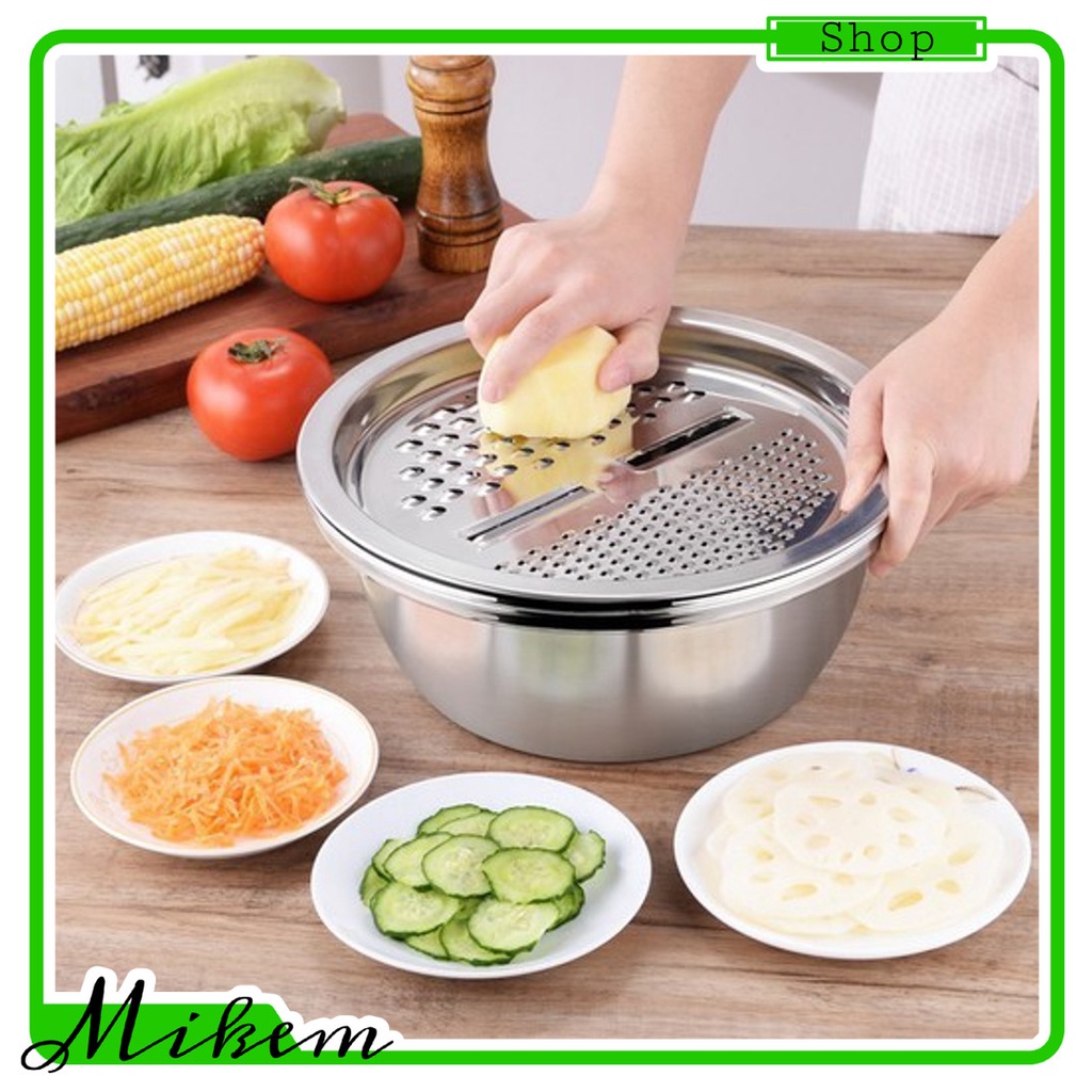 Bộ Thau Rổ bào inox tiện lợi 26 cm, Mâm nạo củ quả tiện lợi 3 trong 1/RỔ BÀO RAU CỦ INOX - BỘ THAU RỔ BÀO RAU CỦ INOX