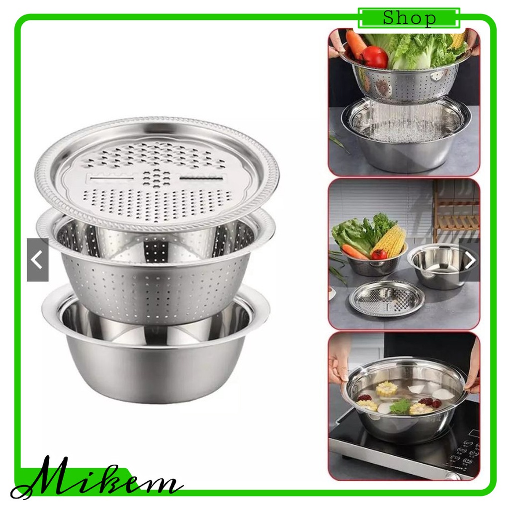 - BỘ THAU RỔ BÀO RAU CỦ INOX KHÔNG RỈ 3 MÓN