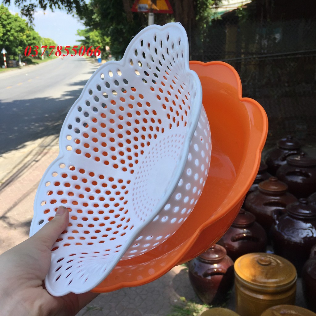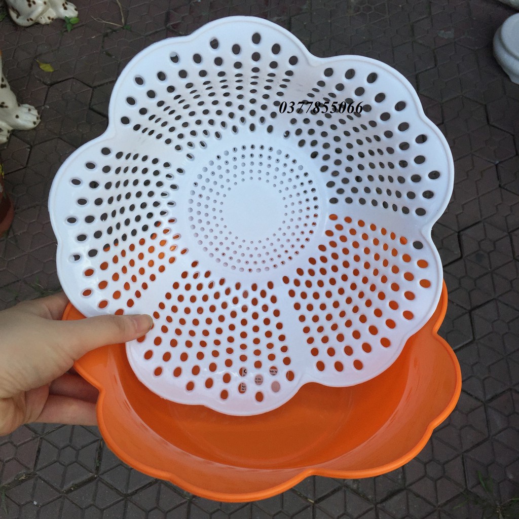 Nhà cửa & Đời sống > Dụng cụ chăm sóc nhà cửa > Chậu, xô & gáo nước || Bộ thau rổ đựng hoa quả, rau hình bông hoa mai kích thước 30*15cm (có tách riêng rổ để dóc nước) tiện lợi cho gia đìnhCòn hàng